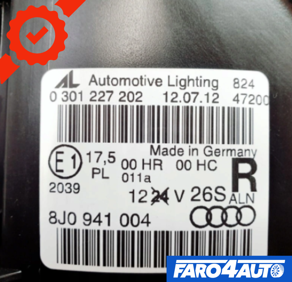 AUDI TT 8J0, FARO DELANTERO DERECHO DE XENÓN