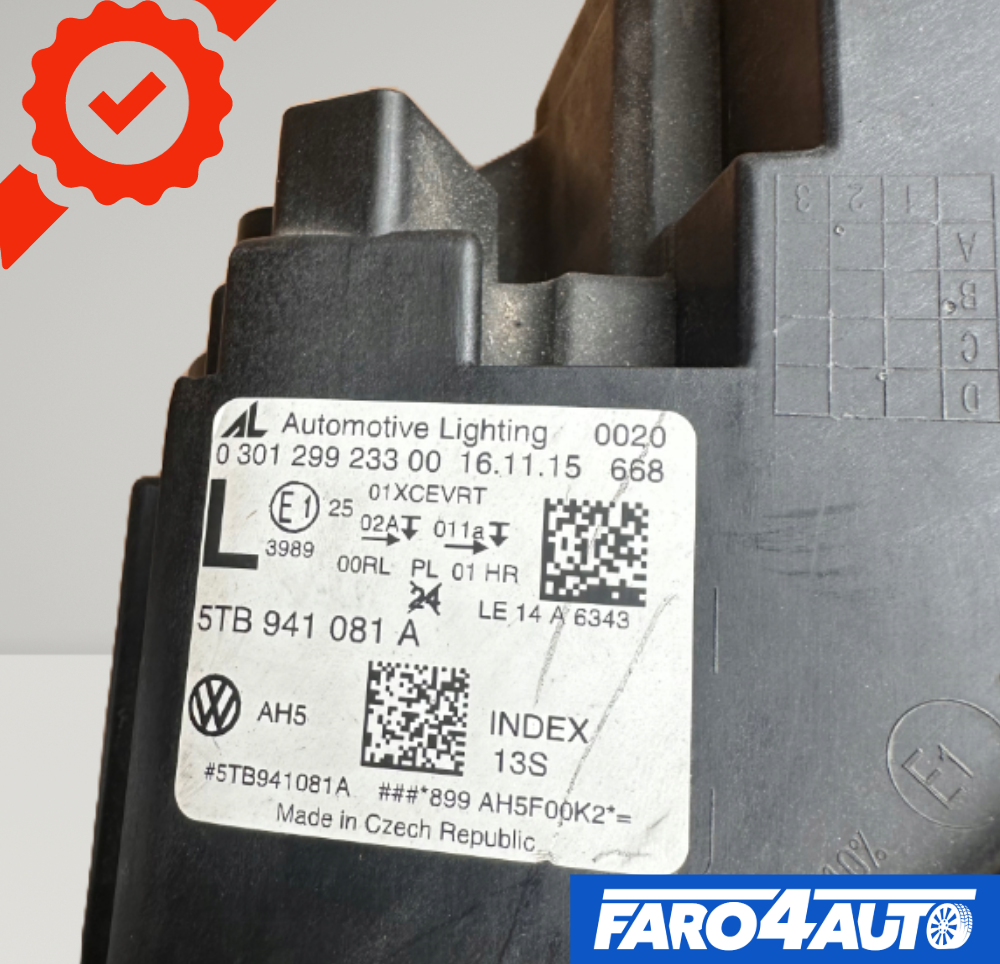 VOLKSWAGEN TOURAN, FULL LED FAROS DELANTEROS LATERALES DERECHO + IZQUIERDO