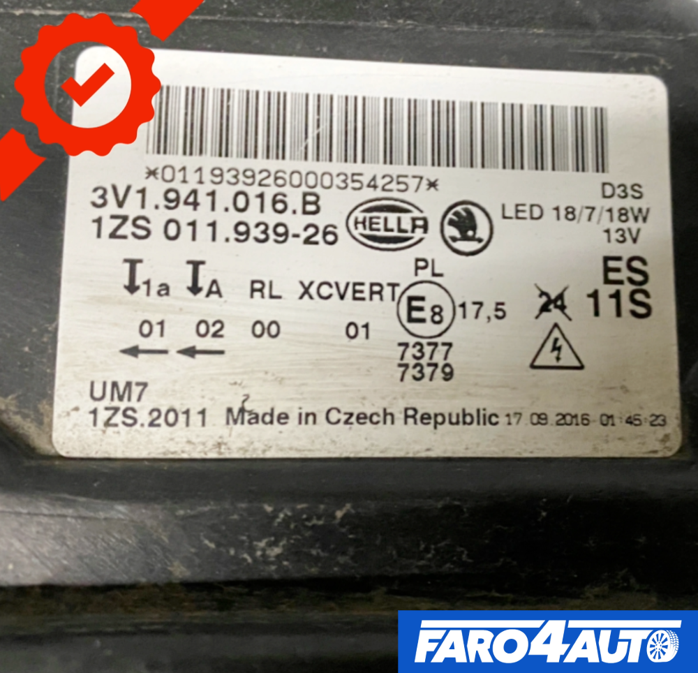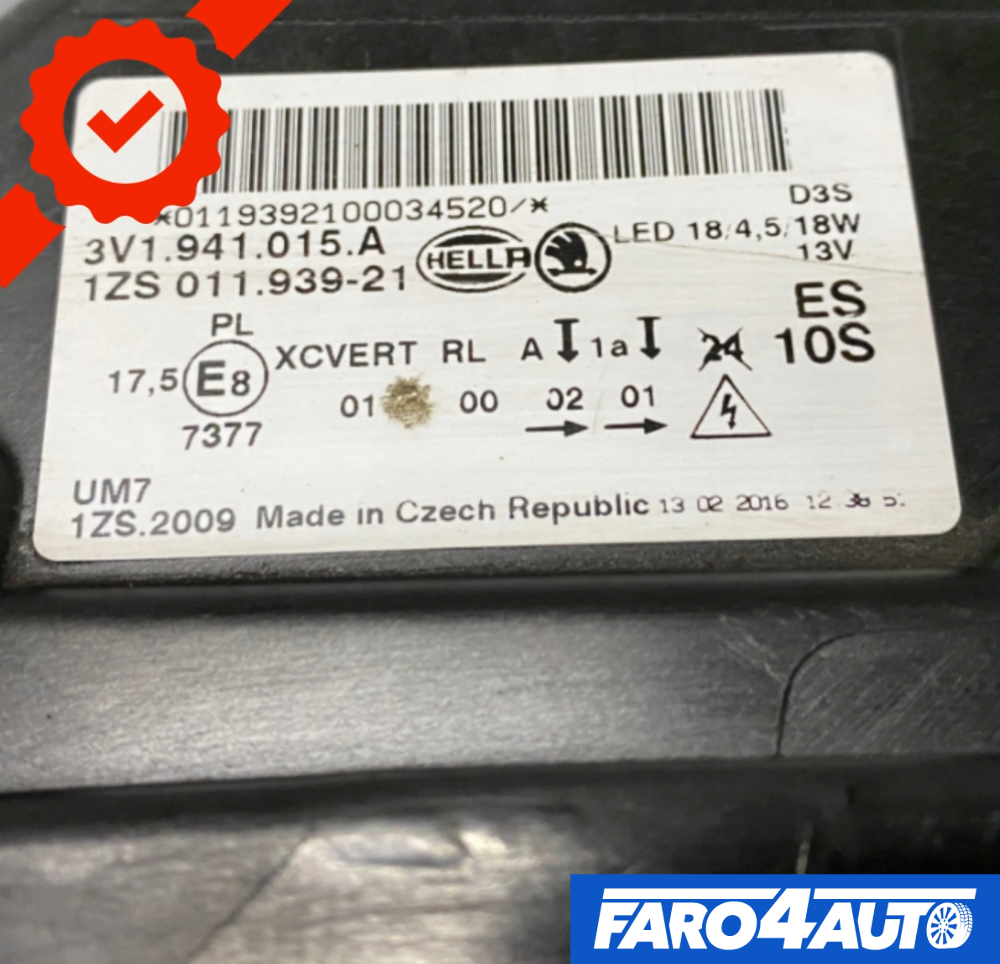 SKODA SUPERB 3 III, FAROS DELANTEROS BI-XENÓN LADO IZQUIERDO + DERECHO
