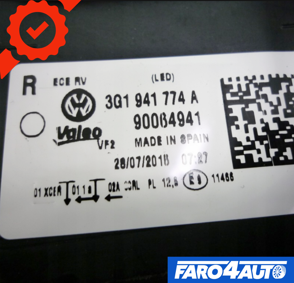 VOLKSWAGEN VW PASSAT B8, FULL LED FARO DEL LADO DERECHO
